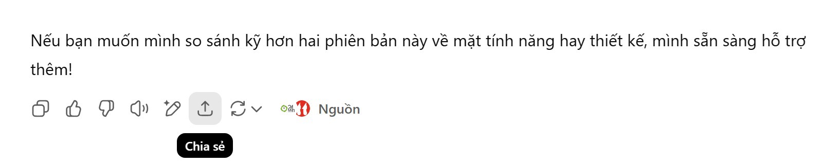 Người dùng có thể nhấn nút “Chia sẻ” trên ChatGPT để chia sẻ nội dung cuộc trò chuyện (Ảnh chụp màn hình).